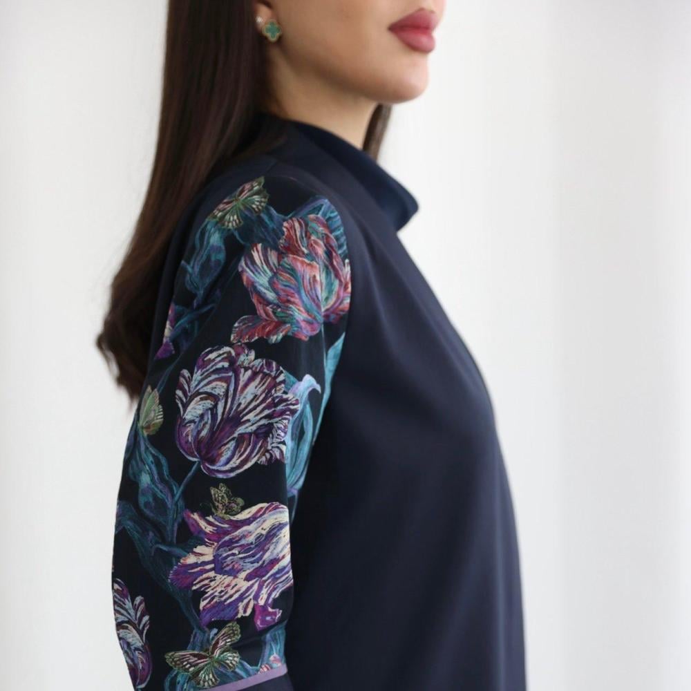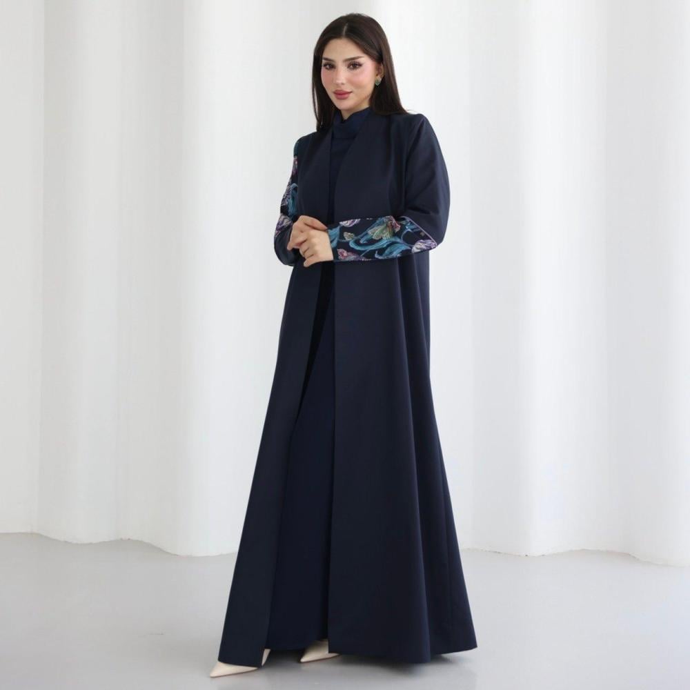 التفاصيل: قماش العباية كتان هندي والأكمام قماش ليبرتي، قصة العبايه بليزر.