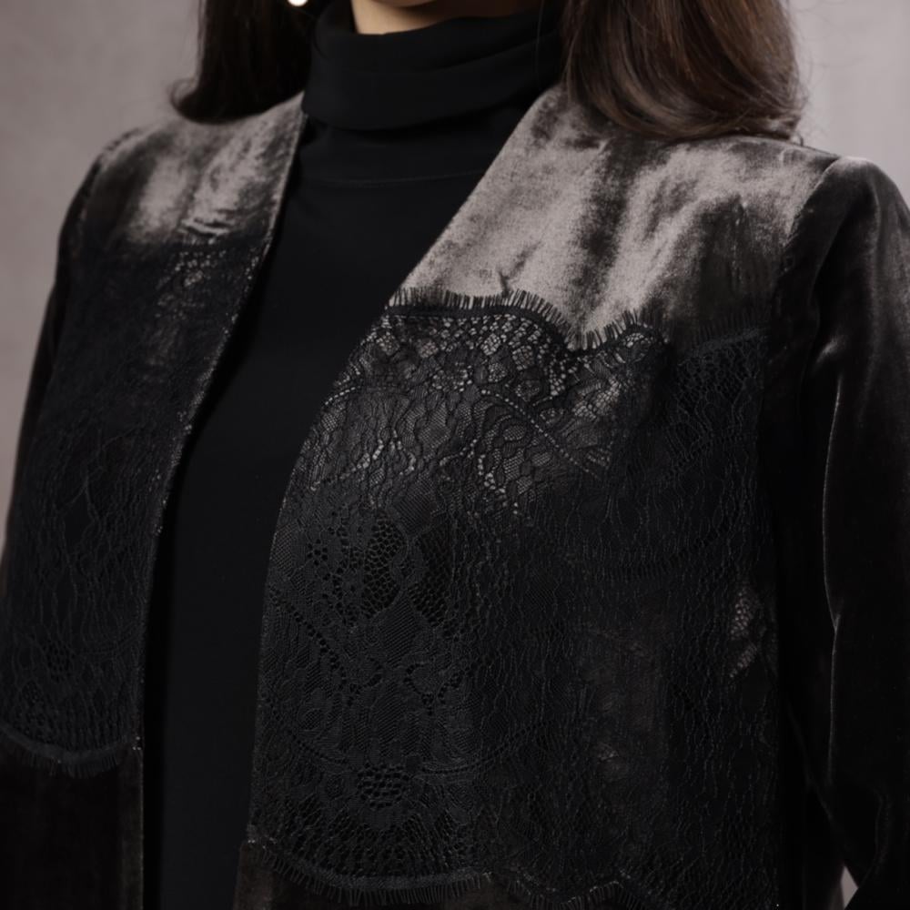 التفاصيل: قماش العباية مخمل ياباني بالإضافة للدانتيل الفرنسي، قصة العبايه بليزر.